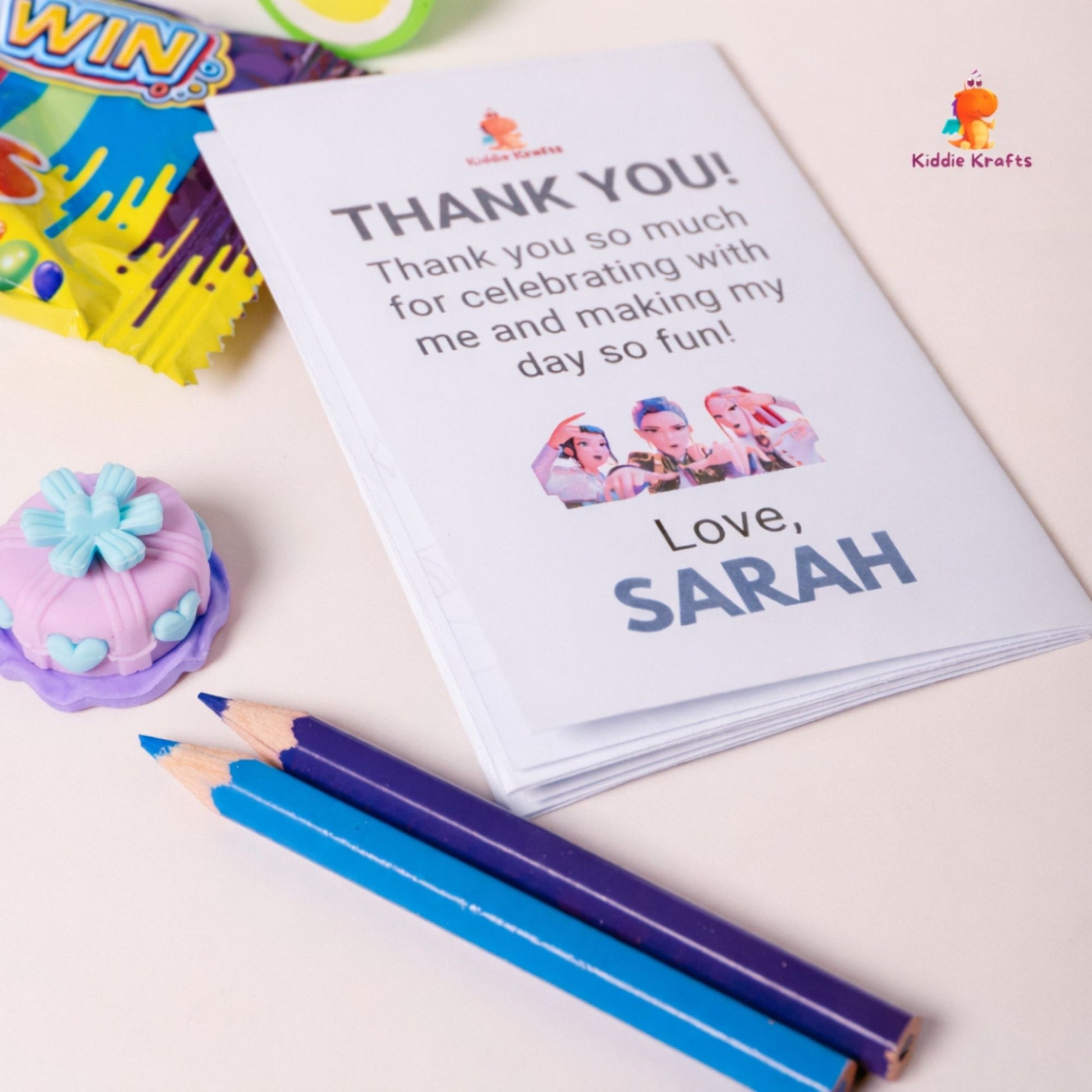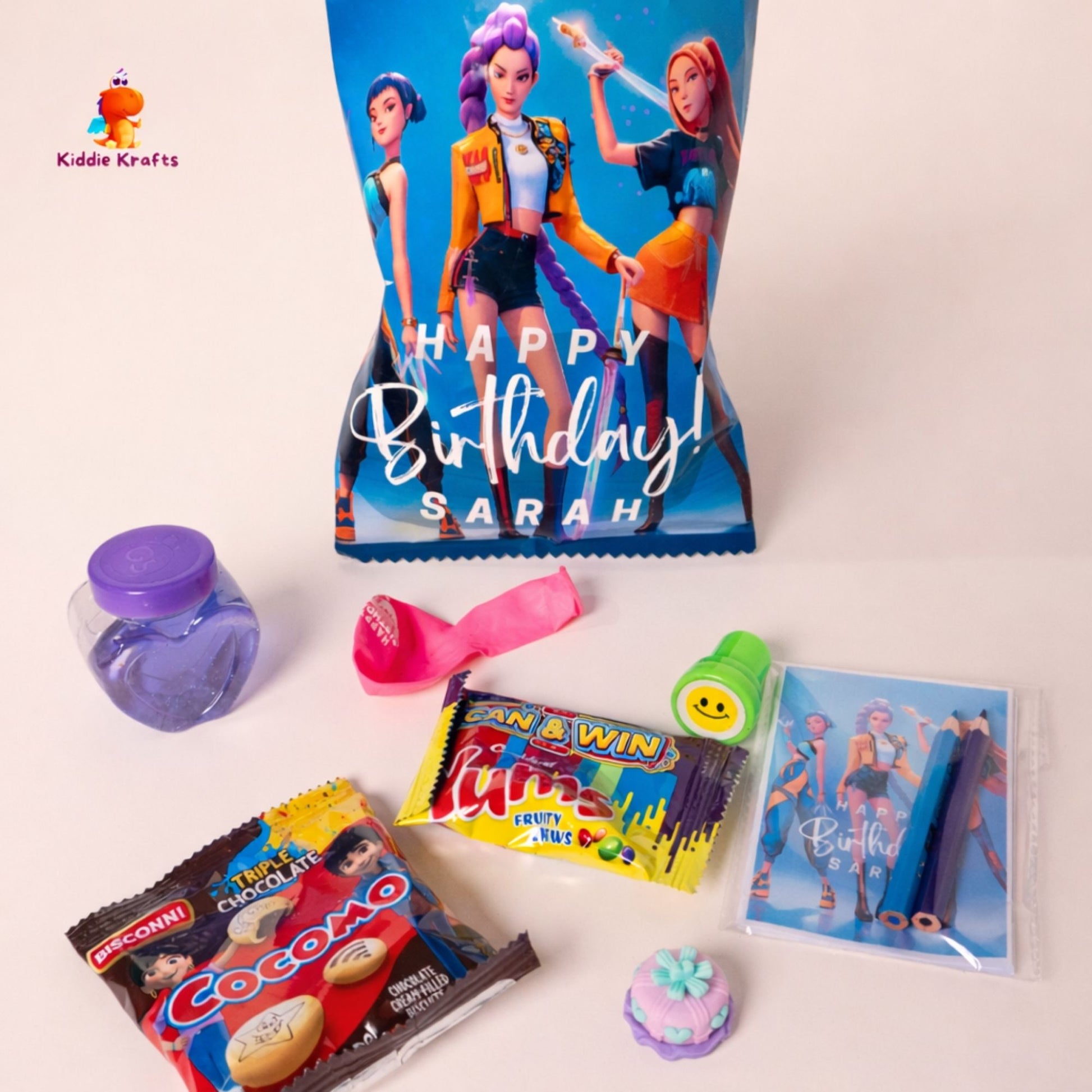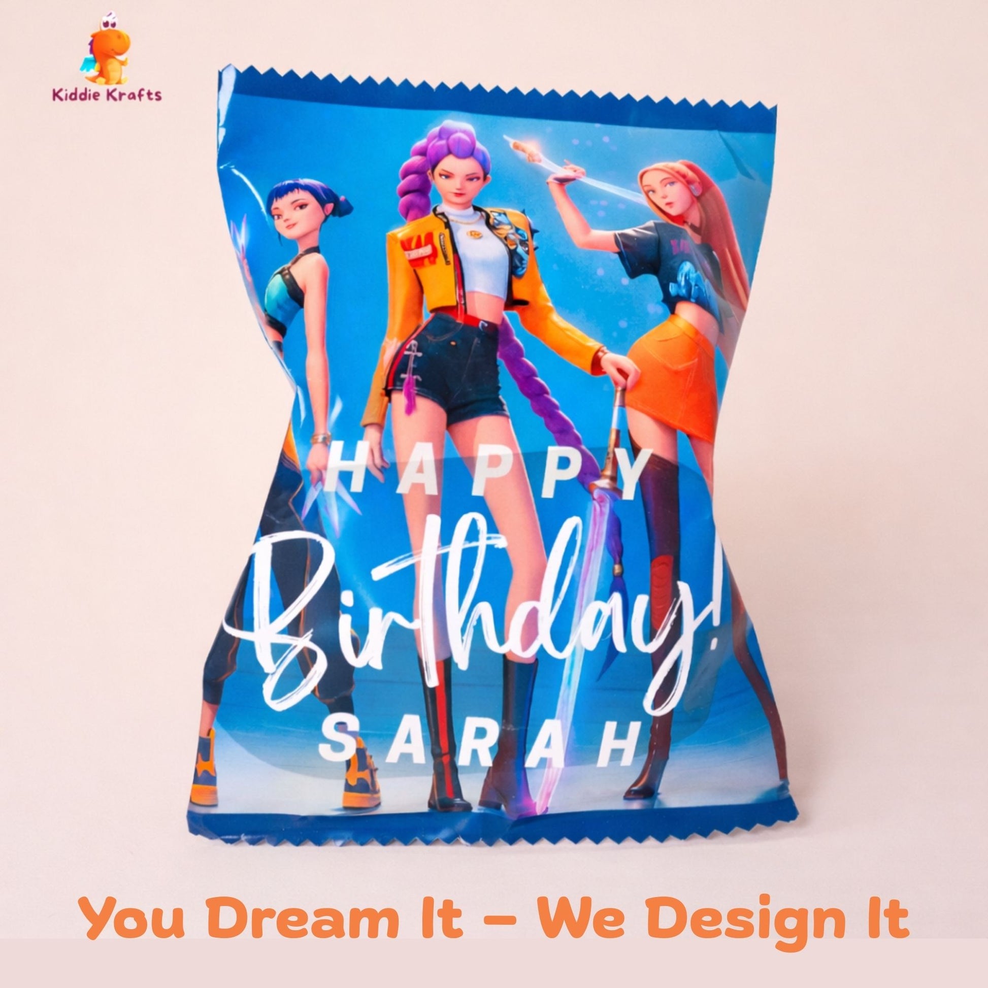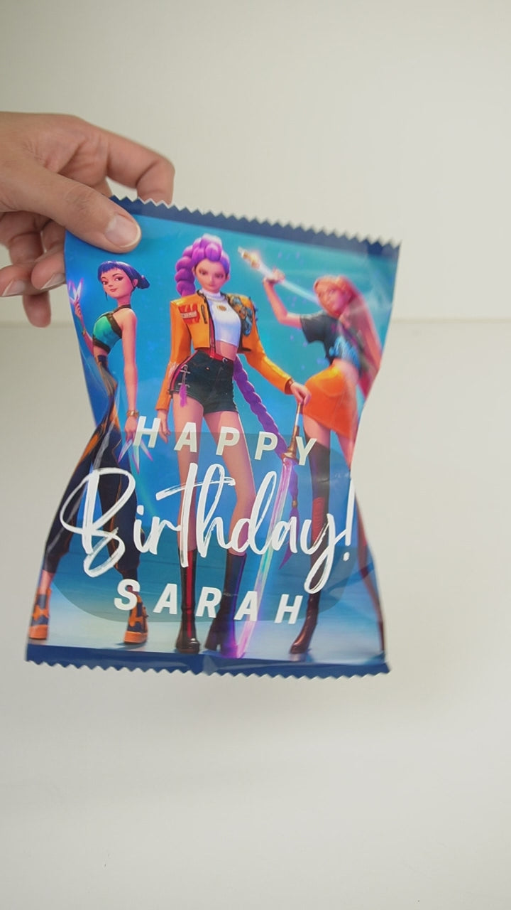 Our K-Pop Demon Hunters Theme Sweet Pouch is a bold and trendy party favor, perfect for kids and tweens who love action-packed, K-pop–inspired themes. Each pouch is a customized K-Pop Demon Hunters–themed bag, personalized with the child’s name, making it an exciting return gift for birthdays and celebrations.