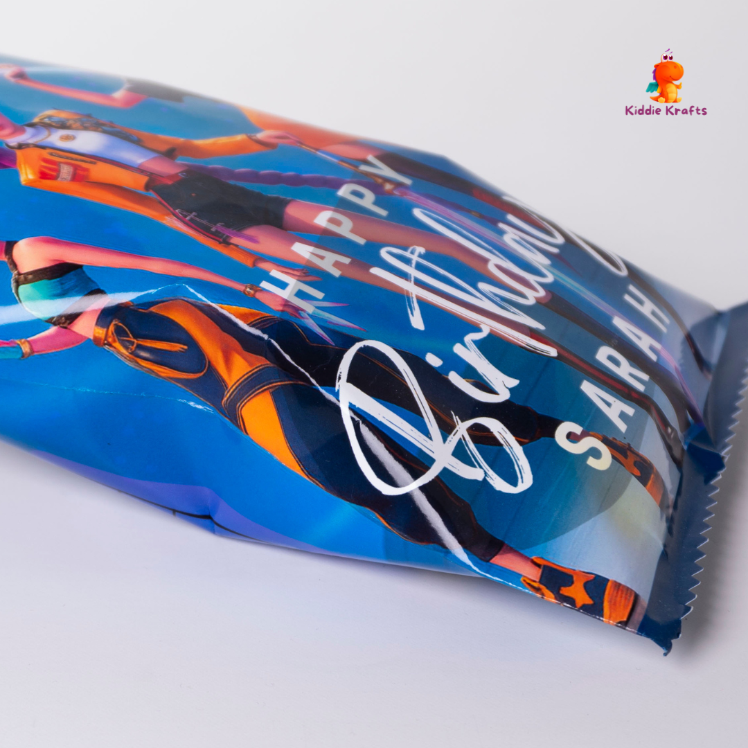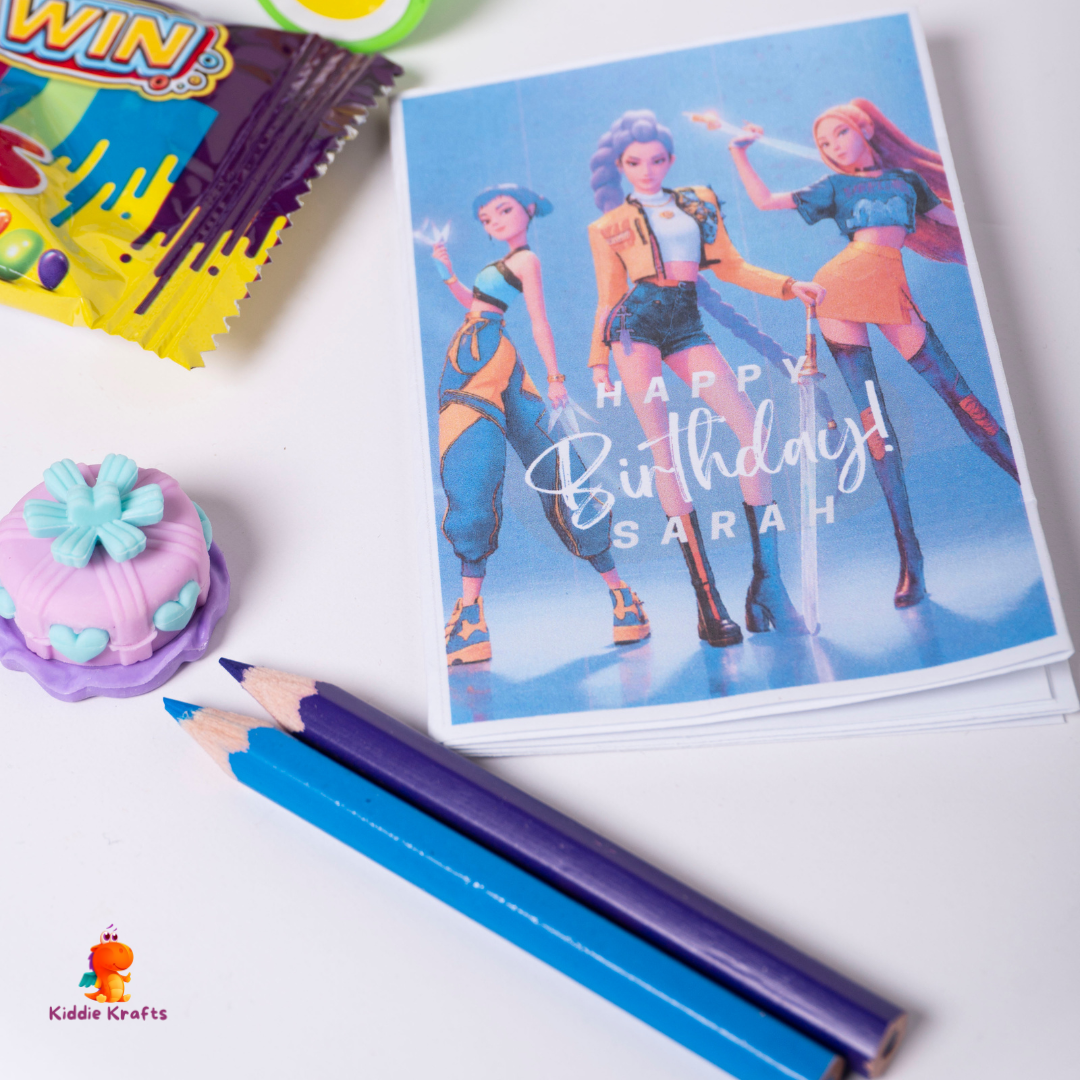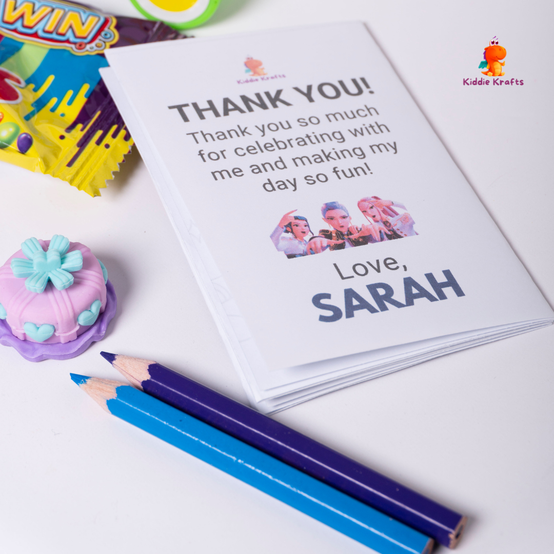 Our K-Pop Demon Hunters Theme Sweet Pouch is a bold and trendy party favor, perfect for kids and tweens who love action-packed, K-pop–inspired themes. Each pouch comes in a customized K-Pop Demon Hunters–themed bag, personalized with the child’s name, making it an exciting return gift for birthdays and celebrations.