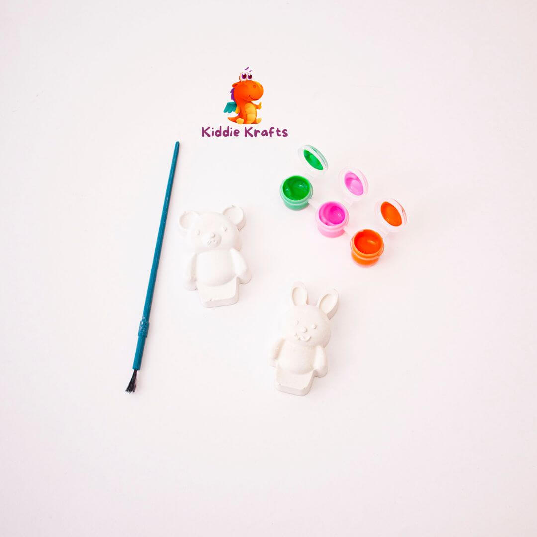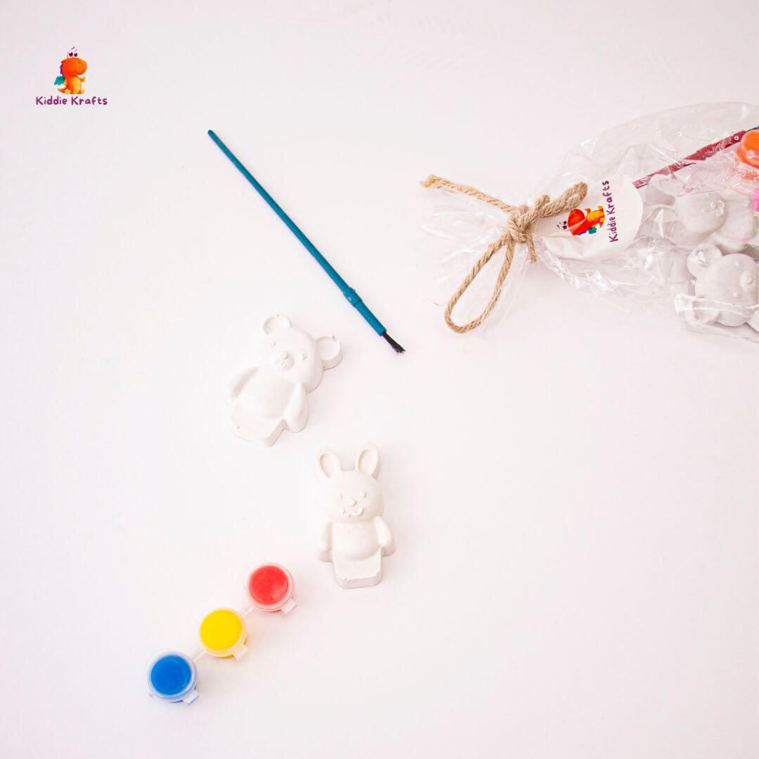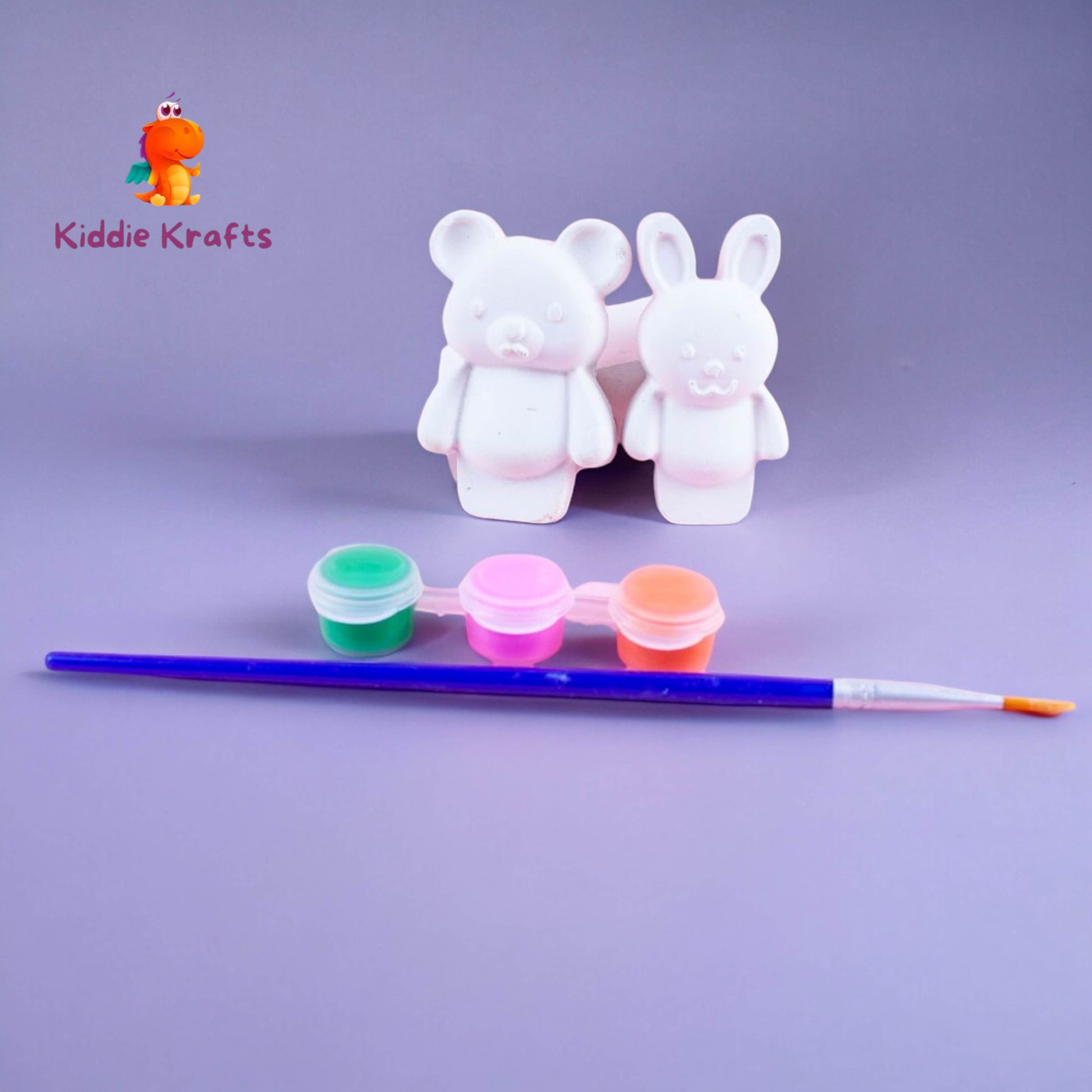 - 3 Paint Tubs: Non-toxic paints in bright colors to decorate both the teddy and bunny.